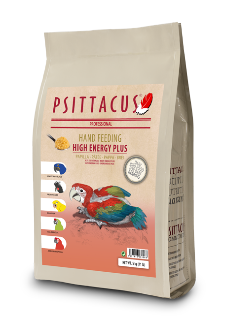 High Energy Plus Hand Feeding (Papilla Alta Energia Plus) és un aliment complet per a la cria manual de d'aus psitaciformes.