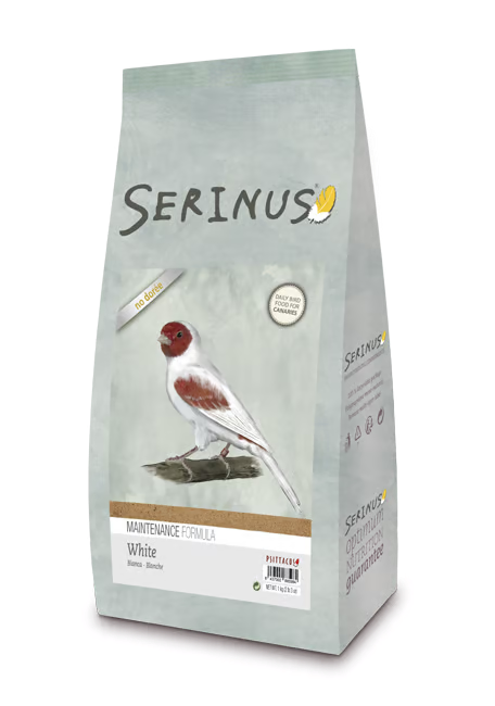 Indicated for canaries that we wish to avoid 'dorée' (pigmentation of the feather derived from the ingestion of carotenoids and xanthophylls). Serinus formulas are complete foods. The maintenance formula is indicated for ornamental and singing birds, and to be supplied during the non reproductive period in breeding individuals. The white formulas are foods designed for breeds that, due to the established competition standards, should not show reddish, orange or yellowish colors in their plumage.