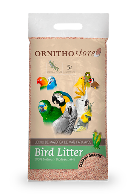 Bird Litter es un lecho natural producido a partir de la parte central de la mazorca de maíz, con un agradable aroma a romero. Está indicado como sustrato absorbente para jaula o instalaciones de todo tipo de pájaros. Bird Litter es un producto calibrado, suave, libre de polvo y confortable, ideal también para el interior del nido de algunas especies de aves.
